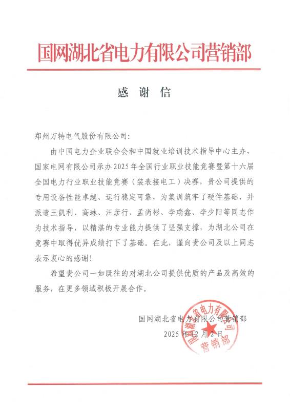 這一封感謝信,不僅代表了客戶對萬特電氣的認(rèn)可,更是激勵我們不斷創(chuàng)新產(chǎn)品、提高服務(wù)意識的進(jìn)步源泉。